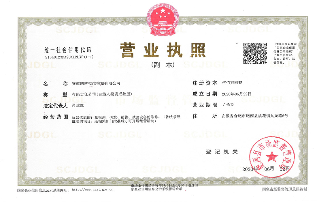2020年6月22日,安徽朗博校準檢測有限公司成立